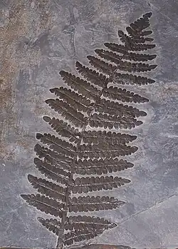 Fossilized fronds of the Carboniferous seed fern Callipteridium - †Callixylon