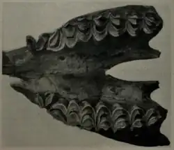Mounted fossilized skeleton of the Miocene elephant relative Platybelodon - †Platygonus