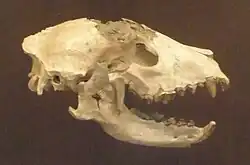 Fossilized skull of the Miocene bone-crushing dog Tomarctus - †Triisodon