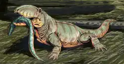 Life restoration of the Permian amphibian Cacops - †Cacops aspidephorus – type locality for species