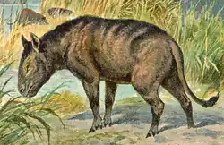 Life restoration of the Paleocene pantodont mammal Titanoides - †Titanoides gidleyi – or unidentified comparable form
