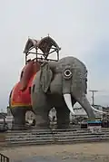 | Lucy the Elephant | 19.7 | 65 | James V. Lafferty, designer | 1881 | Margate City, New Jersey | 39°19′14.33″N 74°30′42.85″W / 39.3206472°N 74.5119028°W | wood, tin sheeting | Similar novelty buildings built at Coney Island, New York (Elephantine Colossus) and Cape May, New Jersey do not survive. NRHP listed. | |