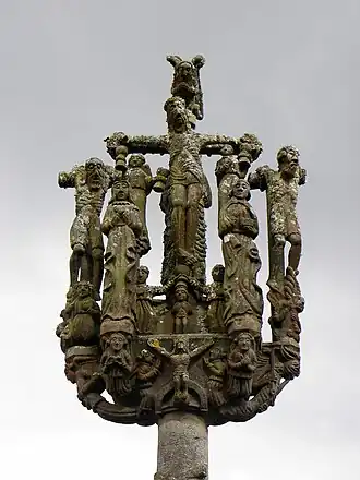 Apart from the Guimiliau calvary, the Maître de Guimiliau worked on two other calvaries, those at Saint-Herbot and at Mespaul.