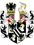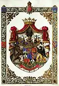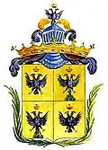 A branch of the Batthyány family. Bohemian prince: 1763; imperial prince: 1764. The Batthyány-Strattman name was conferred upon Károly József Batthyány in 1755. After the line descending from him died out, the name and the title of prince were granted to László Batthyány in 1915. The Batthyány-Strattmanns' hereditary seat at the Upper House of the Diet of Hungary was confirmed by Act VIII of 1886. | [2] | ||