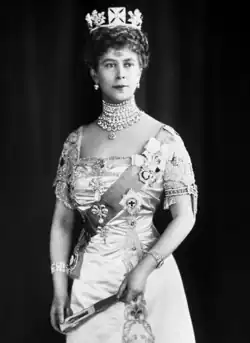 Queen Mary wearing the Garter Star, Victoria and Albert Order and the Royal Family Orders, 1912