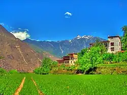 View of Bayi Town (altitude of 3000 meters) from the Niyang River