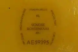 Boerenkaas (lit.'farmhouse cheese') is a Dutch cheese, most of which is handmade from raw milk[44] from cattle, goats, sheep or buffalo. The cheese may also contain cumin or other seeds, herbs, and spices. Only Dutch cheese produced on a cheese farm in accordance with traditional and controlled production methods may be sold as Boerenkaas.[45]