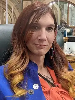 Zooey Zephyr | Democratic | Montana House of Representatives, district 95 | 2023–present | She is the first openly transgender elected official in the Montana Legislature.[35][36] | |