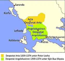 - ^ a b Nicol, Donald M. (1984). The Despotate of Epiros, 1267–1479: A Contribution to the History of Greece in the Middle Ages. Cambridge: Cambridge University Press. ISBN 978-0-521-13089-9. p.145-146