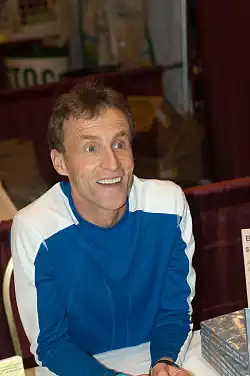 The inaugural marathon had 7,741 entrants, 6,255 of whom completed the race.[4] The first Men's Elite Race was tied between American Dick Beardsley and Norwegian Inge Simonsen, who crossed the finish line holding hands in 2 hours, 11 minutes, 48 seconds.[5] The first Women's Elite Race was won by Briton Joyce Smith in 2:29:57.[5] In 1983, the first wheelchair races took place. Organized by the British Sports Association for the Disabled (BASD), 19 people competed and 17 finished. Gordon Perry of the United Kingdom won the Men's Wheelchair Race, coming in at 3:20:07, and Denise Smith, also of the UK, won the Women's Wheelchair Race in 4:29:03.[6]