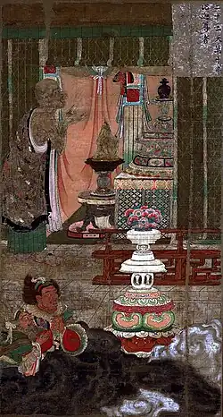 | January 2 to 28 | Shaka rising from the Gold Coffin | 11th century | Hanging scroll, color on silk. Lent by the Kyoto National Museum. | ![]() |