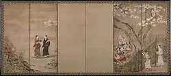 | March 13 to April 8 | Merrymaking under Blossom Trees | 17th century | One pair of six-section folding screens (byōbu) by Kanō Naganobu. | ![]() |