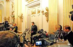 Announcement of the Laureate of the Nobel Prize in Literature, one of the world's richest literary prizes, at the Swedish Academy in Stockholm (2008).