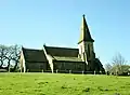 1856 | The church, designed by E. B. Lamb in Early English style, is in gritstone with a stone slate roof. It consists of a nave, a north aisle, a chancel, and a northwest steeple and porch. The steeple has a tower with two stages, stepped angle buttresses, tall lancet bell openings, deep corbelled eaves and a tall pyramidal spire with lucarnes and a finial. The entrance to the porch has a pointed arch with a chamfered surround.[6][7] |