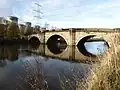 1797 | The bridge, which was designed by John Carr, carries the former Great North Road over the River Aire. It is in millstone grit, and consists of eight round-headed arches, three over the river, one over the land on the Brotherton side, and four over the land on the Ferrybridge side. The arches over the river have volute keystones and hood moulds, canted cutwaters rising to pedestrian refuges, a dentilled cornice, and a parapet with a vase balustrade. Flanking these arches are piers containing a niche with a quoined surround. The outer arches have a band, two have plain keystones and the others have rusticated surrounds. The parapet has splayed ends and rounded caps on three ends.[4] | I |