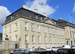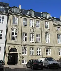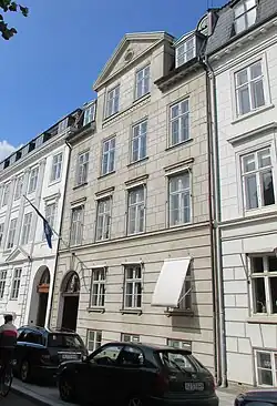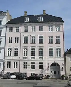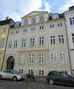 Amaliegade 13, 1256 København K | 55°40′58.48″N 12°35′31.4″E / 55.6829111°N 12.592056°E | House originally built in 1755, but the upper floor made taller and mansard roof and triangular pediment added some time before 1783, and a side wing from 1808 which was shortened in 1960[22] |