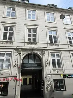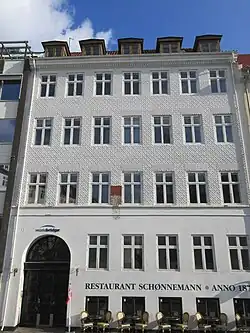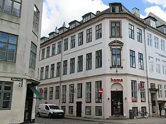 Admiralgade 21, 1066 København K | 55°40′40.37″N 12°34′55.42″E / 55.6778806°N 12.5820611°E | Corner building from 1798 to 1799[8] |