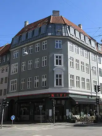Amagertorv 1, 1160 København K | 55°40′43.2″N 12°34′45.44″E / 55.678667°N 12.5792889°E | Corner building from 1796 to 1797 which was altered in 1854 by Christian Tybjerg[12] |