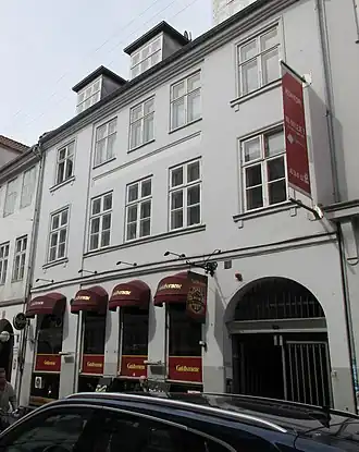 Niels Hemmingsens Gade 1, 1153 København K | 55°40′43.89″N 12°34′40.31″E / 55.6788583°N 12.5778639°E | Building from c. 1680, which was altered and expanded with extra height in 1731 and again in 1857[14] |