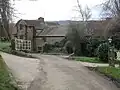 16th century | The outbuilding is in sandstone with a corrugated sheet roof. There is a single storey with lofts, and an offshut to the south. On each front there are three doorways, and inside are two massive cruck trusses.[9] | II |