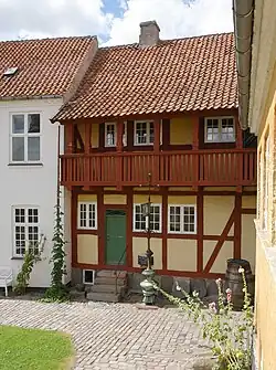 Kirkestræde 2B, 4300 Holbæk | 10-bay, one-storey, half-timbered house from c. 1600 located adjacent to St. Nicolas' churchyard.[14] | |