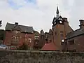 1875 | The outbuildings were designed by John Douglas as part of a model farm. They are in stone with some timber-framing and a tiled roof. The outbuildings have an L-shaped plan, and are in two storeys. Their features include various openings, including gabled dormers, and pitch holes.[38][40] | II |