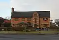 Late 19th century | A brick cottage with a slate roof, built as part of the Farington Almshouse Trust. It has a single storey with an attic, and a symmetrical front. The cottage has a central gabled porch with a round-headed opening, and two gabled dormers; all the gables have wavy bargeboards and finials. The windows are casements.[4][53] | II |