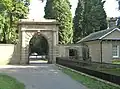 Early 19th century | The gateway and lodge are in ashlar. The gateway consists of a round-headed arch with vermicular rustication. It has a scrolled keystone, attached Tuscan columns, and a plain entablature with a moulded cornice and a stepped parapet. Between the arch and the lodge is a postern gate. The lodge is in Neoclassical style, it has a single storey and is in a T-shaped plan. The roof is in slate, and the lodge has pedimented gables, rusticated quoins, and sash windows with architraves.[28][41] | II |