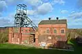 c. 1900 | The colliery buildings, which were reconstructed in 1956, are in red brick with concrete dressings and a corrugated steel roof. The engine house has fronts of four and three bays. It contains a wide entrance in the right gable end, and a doorway on the north side, where there is also a small date plaque. On the roof are two steel ventilators. The engine house is joined to the shaft-head building by a bridge at the upper floor level. On the shaft-head building are two pit winding engine wheels, and a smaller emergency wheel, all in steel. Both parts contain windows in metal frames, mostly square, and some blocked.[11][12] |