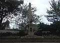 1913 | The memorial commemorates the Oaks Colliery Disaster of 1866. It has a stone pedestal consisting of two abutting squares with moulded entablatures and deep plinths. On the rear square is an obelisk with a moulded base and a bronze finial. On the front square is a bronze statue, a copy of a statue, Gloria Victis, by Antonin Mercié, depicting Athena, a female figure carrying a wounded soldier, with an owl at her feet. The front of the pedestal carries an inscription and an inscribed bronze panel. The pedestal stands on a two-step podium and is enclosed by a low stone wall with railings.[11][13] |