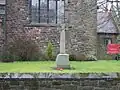 1920 | The war memorial is in the churchyard of St Werburgh's Church. It is in Aberdeen granite, and has a simple Celtic cross-style design. The cross is set on a tapering square base and a square plinth. On the base are inscriptions and the names of those lost in the two World Wars.[24] | II |