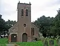 Late 16th century | The church was extended in the 17th century, and the sanctuary and tower date from 1711. It is partly timber framed, partly in sandstone and partly in brick, and has a roof of Kerridge stone-slate. The church consists of a nave, north and south aisles, a chancel and vestry, and a tower at the east end. The tower has a doorway with a semicircular head and a dated keystone, above it at the east end is an oval window, the bell openings are round-headed, and on the summit are six pinnacles. The windows are mullioned. The church is now redundant.[3][4] | I |