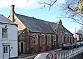 1861 | The school, which is in Gothic style, is in brick with stone dressings and a slate roof with coped gables. There is one storey, eight bays, and lean-to extensions on the sides. The fifth bay is larger and gabled, and contains a five-light window with a hood mould, the other windows having three lights. In the fourth bay is a plain entrance, and there are more entrances in the extensions with segmental heads and hood moulds.[6][9] | II |