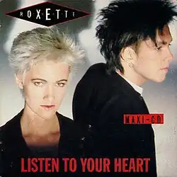 "Listen to Your Heart" is a song by Swedish rock duo Roxette, originally released in Sweden in September 1988 as the second single from the duo's second studio album, Look Sharp! (1988). It was written by Per Gessle with former Gyllene Tider guitarist Mats "M.P." Persson. The song went on to become one of the most successful singles of 1989, reaching number one in both the United States and Canada around November 1989.[2] The track was the first song to reach number one in the US without a commercially released 7-inch single.[3]