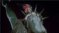Seymour pulls Audrey from the plant's jaws but she is mortally wounded. Seymour sadly fulfills Audrey's dying wish to be fed to the plant so that it can live and Seymour can earn the success he deserves ("Somewhere That's Green" (reprise)). Seymour attempts to kill himself by jumping off of the shop's roof, but learns that botanical executive Patrick Martin plans to propagate and sell Audrey IIs with or without Seymour's consent and, realizing that Audrey II is planning global conquest, resolves to destroy the plant. Audrey II reveals that he is an extraterrestrial as he tears down the shop, fishes Seymour from the rubble and eats him alive ("Mean Green Mother from Outer Space"). Subsequently, as the three chorus girls explain, Audrey II buds became a worldwide craze. Fueled by the greed of their owners who provided them with blood, the Audrey II buds grew into an army of monstrous plants that began to take over the Earth. Giant Audrey II plants are shown toppling buildings and feeding on people, with the United States Army notably fighting the buds ascending the Statue of Liberty ("Finale (Don't Feed the Plants)").[4]