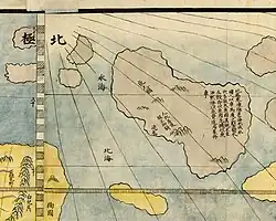 Liuguiguo (Chinese: 流鬼國; lit. 'State of the Floating Demons') is the toponym for the Liugui people documented in old Chinese records, including the Xin Tangshu, Zizhi Tongjian, and Wenxian Tongkao.[1] Its location is uncertain, being placed by some in the area of Kamchatka and others beyond to the northeast.[1] The description on Matteo Ricci's map corresponds with what is known from these texts, both the Xin Tangshu and Zizhi Tongjian referring to furs, the former also to their inability to ride.[1] A Liugui "tribute embassy" to the Tang in the fourteenth year of Zhenguan (640) is also documented.[1]
