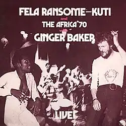 Live! is a live in-studio album[4] recorded on July 25, 1971, by Fela Kuti's band Africa '70, with the addition of former Cream drummer Ginger Baker on two songs. It was released in 1971 by EMI in Africa and Europe and by Capitol/EMI in the United States and Canada. It was reissued on CD by Celluloid in 1987 and was reissued on CD in remastered form by Barclay with a bonus track from 1978.