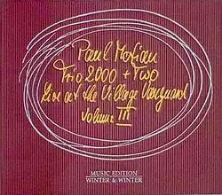 Live at the Village Vanguard Vol. III is a live album by Paul Motian's Trio 2000 + Two, recorded at the Village Vanguard and released by Winter & Winter Records in 2010.[1] It is the final volume of the series, and features tenor saxophonist Chris Potter, double bassist Larry Grenadier, pianist Masabumi Kikuchi and violist Mat Maneri (in place of a second saxophonist).