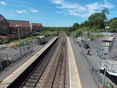 Llanharan railway station serves the village of Llanharan in south Wales. Funded in part by SEWTA and at a cost of £4.3 million,[1] it opened in December 2007.[2] It is 183 miles 72 chains (296.0 km) from the zero point at London Paddington, measured via Stroud.[3]