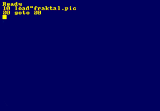 Also available is a parametric LOAD command, allowing, for example, to load a file containing "raw" picture data into video memory, causing it to be displayed, with a couple of BASIC instructions. Adding a memory address as parameter to the commands LOAD or SAVE allows easy loading of raw uncompressed 16 KB screen pictures.