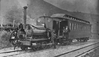 The first locomotive in New Zealand was built by Slaughter & Co in Bristol,[1] arrived at Ferrymead[2] in May 1863[3] to work on Canterbury Provincial Railways' 5 ft 3 in gauge. It was withdrawn in 1876.[4] Lady Barkly, in use on Invercargill's jetty in August 1863 during construction of the Bluff branch, was another early example of a steam locomotive operating in New Zealand. [5]