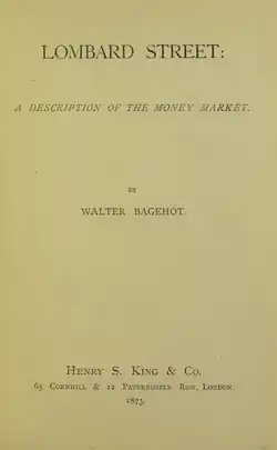 - ^ Since 1873 the book has been reprinted and published many times. See Bagehot, Walter (1897). Lombard Street: A Description of the Money Market. New York: Charles Scribner's Sons. Retrieved 21 July 2014. via Archive.org