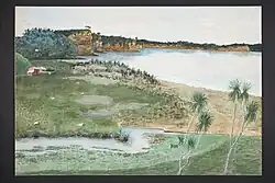 From the conquest until the early 19th century, Ngāti Kahu and Ngāti Poataniwha, two hapū who descend from Kahu, lived at Long Bay.[12][13] A defensive headland was constructed at Te Piripiri (Pipiri Point),[13][5] and a kāinga was settled at Te Awaruaika (the shores of Awaruaika, or Vaughans' Stream).[26][13] By the 18th century, the Marutūāhu iwi Ngāti Paoa had expanded their influence to include the islands of the Hauraki Gulf and the North Shore.[31] After periods of conflict, peace had been reached by the 1790s.[32] The earliest contact with Europeans began in the late 18th century, which caused many Tāmaki Māori to die of rewharewha, respiratory diseases.[33] During the early 1820s, most Māori of the North Shore fled for the Waikato or Northland due to the threat of war parties during the Musket Wars. Most people had returned by the 1830s,[12][8] and remained at Te Oneroa until the 1850s.[9]