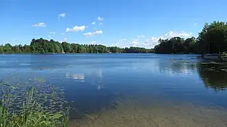 The lake has a maximum depth of 20 feet (6.1 m) near the northern end.[1] The lake is surrounded mostly by private residences but does have one public access boat launch along Ingersoll Road at the southern end of the lake at 44°34′06.2″N 85°18′13.3″W / 44.568389°N 85.303694°W. The boat launch has minimal roadside parking with a loose gravel surface that is only suitable for small to medium watercraft.[5]