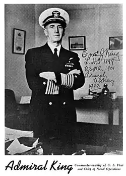 Signed Promotional picture of Admiral King, a notable Lorain High School alumnus.