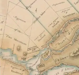 - ^ a b Gouvernement du Québec (14 February 2013). "Seigneurie du Lac-des-Deux-Montagnes". Commission de la toponymie du Québec. 118951. Retrieved March 17, 2013.