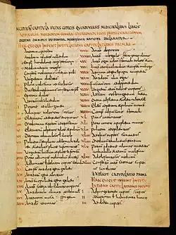 The Lorsch Pharmacopoeia (sometimes called the Lorsch Leechbook, Lorscher Arzneibuch or Lorsch Book of Remedies) is an extensive medical manuscript composed around Lorsch Abbey during the era of Charlemagne, likely created around 785. It has been described as the oldest preserved book on monastic medicine from the early medieval West, and the oldest preserved medical book in Germany.[1]