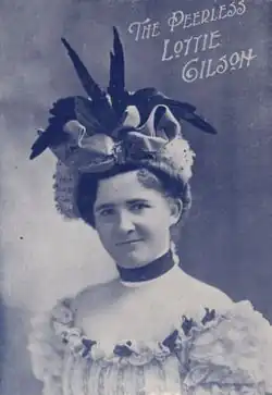 She was born Lydia Degen in Basel, Switzerland.[1][2] She emigrated to the United States with her parents as a young child. Many details of her early life are unknown, including when she made her stage debut. The first record of her performing is in 1884, at the Bowery's Old National Theatre, where she became a regular act.[1] Her success at Old National led eventually to engagements at top New York theaters of the day: Tony Pastor's, Henry Miner's, and Hyde & Behman's.[1] She was soon established as one of the top soubrettes of vaudeville. She appeared at Miner's Theatre and Tony Pastor's new 14th Street Theatre in Lower Manhattan and Hyde and Behman's Theater in Brooklyn.[1] She took the name Gilson from that of her first husband.[3]