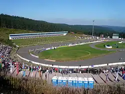 The stadium regularly hosts World Cup biathlon events. The course near Oberhof is considered one of the most challenging in the entire World Cup, and spectator numbers have been among the highest of any World Cup event to date.[1]