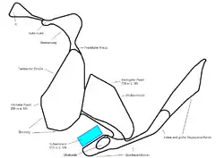 The route sections, including Wolfsschlucht, Birxsteig, Tambacher Straße, Frankfurter Kreuz, U, Brunnenweg, Kulle-Kurve, and Sägespäne-Runde, are selected based on race type, required length, and competitor gender. Course conditions also influence selection; for example, the Wolfsschlucht was omitted in the 2007 World Cup due to insufficient snow. It is often skipped in the first lap of relay or mass start races, approached only after the first shooting when the field spreads out. The Sägespäne-Runde is divided into small and large circuits, used based on race length and discipline.[10]